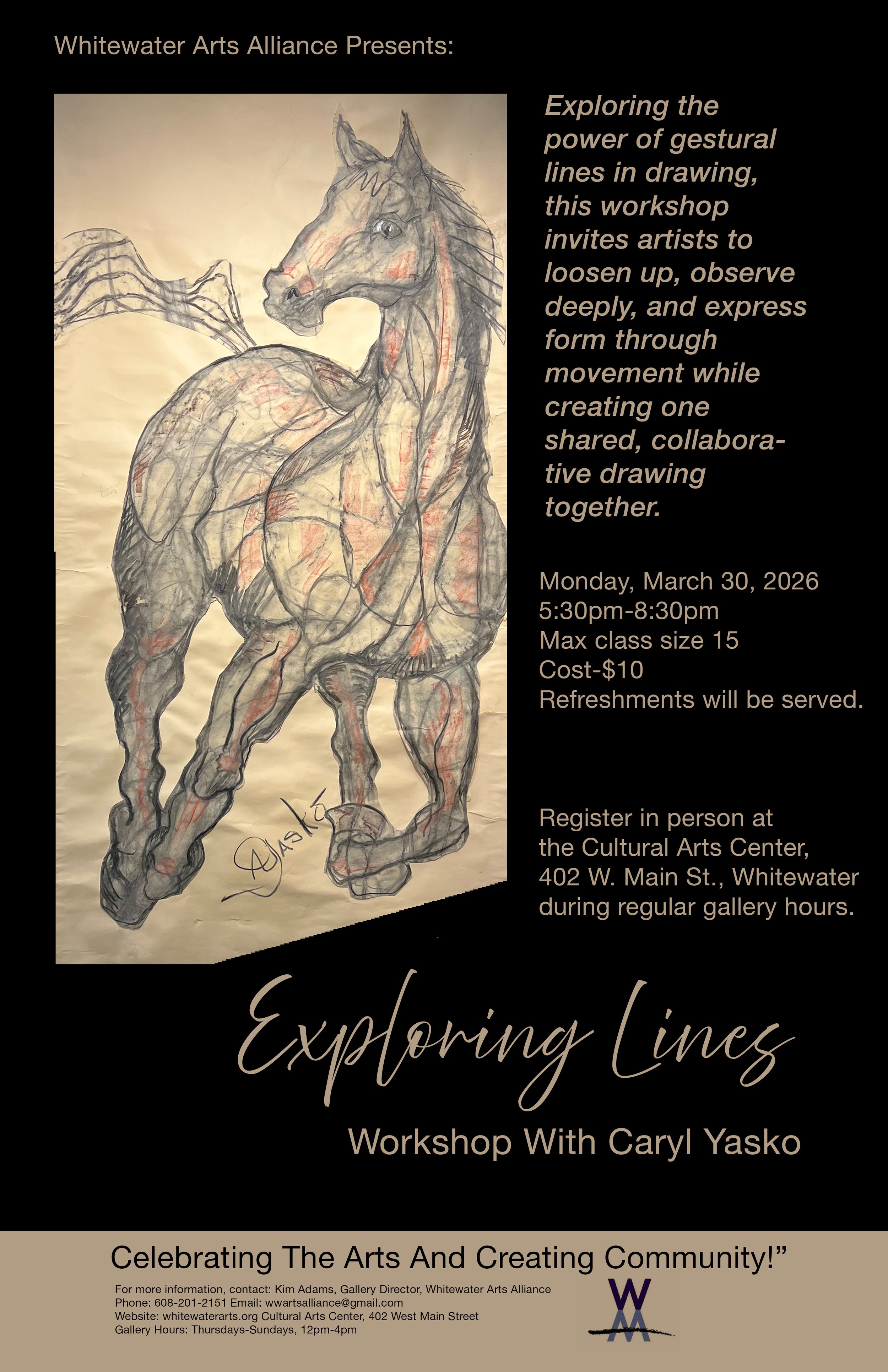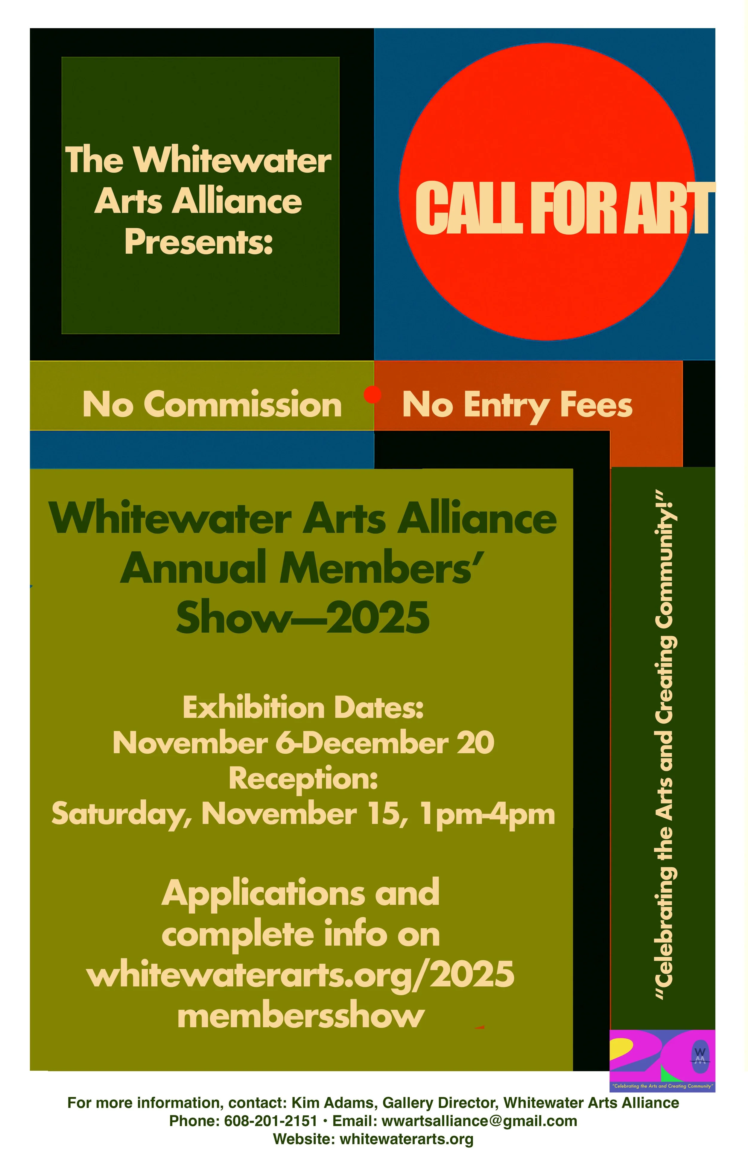 The mission of the Whitewater Arts Alliance, Inc. is to support, promote, and develop the arts as an essential and integral part of our community.. Learn More →