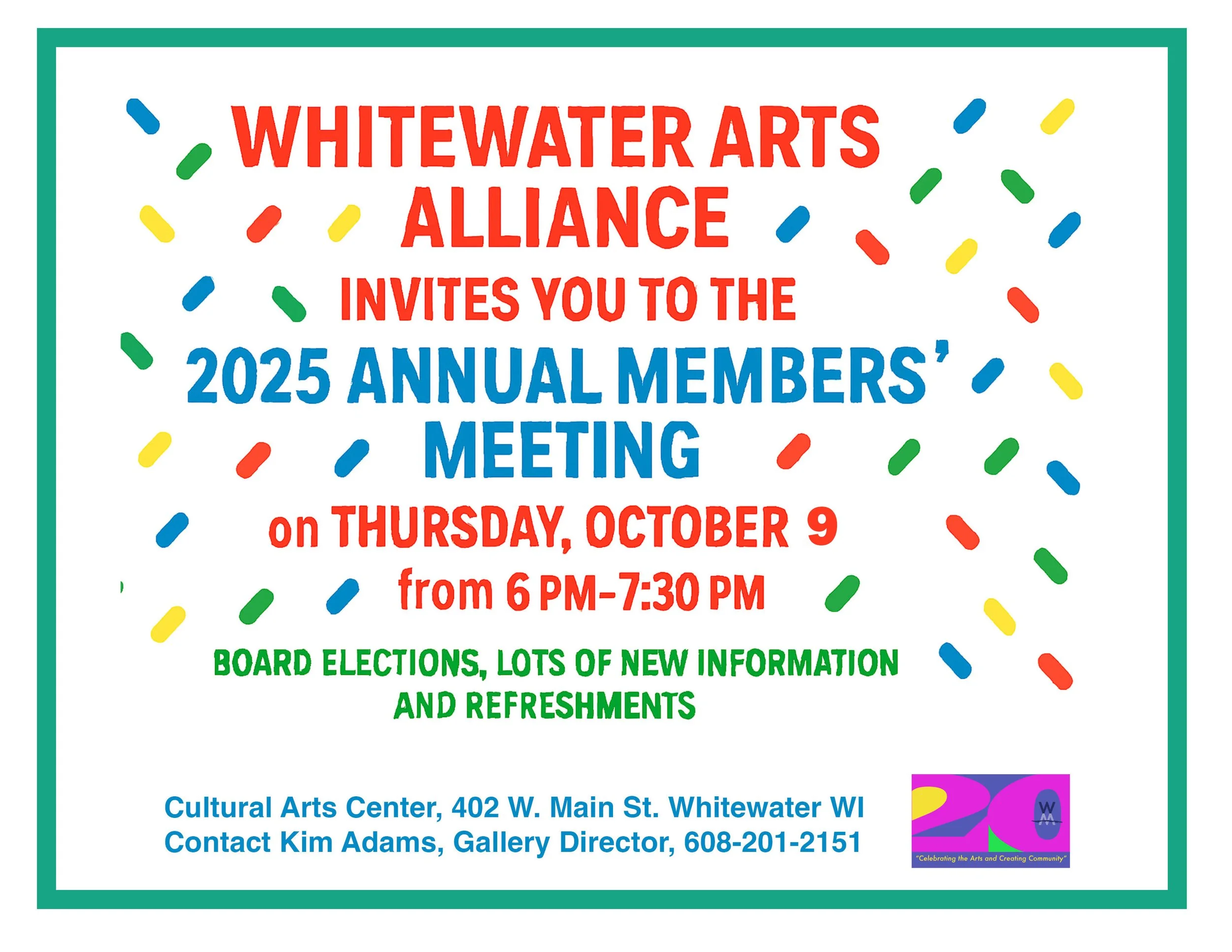 The WAA Annual Members Meeting is open to all current Whitewater Arts Alliance Members and Sponsors.