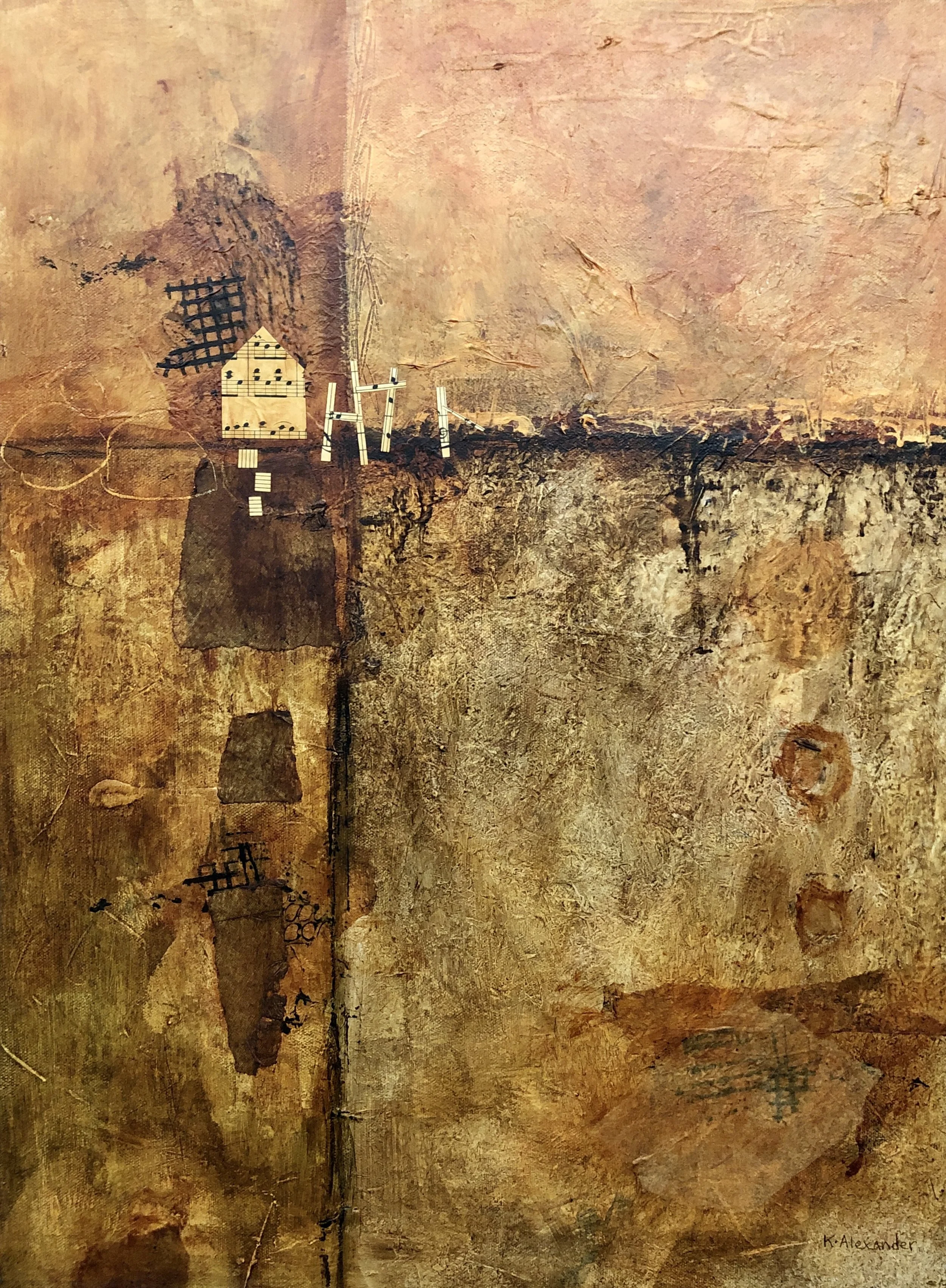 Alexander’s interest in creating abstract art using acrylic and mixed media developed slowly. In 2015, she decided to concentrate on painting abstracts. Her current work includes mark making, texture, and layers of paint, mixed media and sometimes collage.